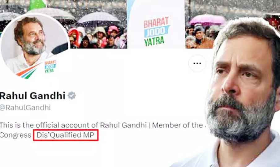 புதுடெல்லி : தகுதி நீக்கம் செய்யப்பட்ட எம்.பி. என ராகுல் காந்தி தனது டுவிட்டர் பக்கத்தை மாற்றம் செய்துள்ளார்.