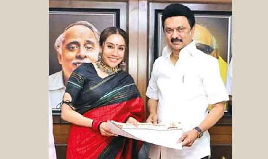 இந்த நிலையில், நடிகர் சத்யராஜின் மகள் திவ்யா, கடந்த 19-ம் தேதி தி.மு.க. தலைவரும், முதல்வருமான மு.க.ஸ்டாலினை சந்தித்து அவரது முன்னிலையில் தி.மு.க. வில் இணைந்தார். தி.மு.க. வின் கட்சி கொடியான கருப்பு - சிவப்பை பிரதிபலிக்கும் வகையில் கருப்பு - சிவப்பு நிற சேலை அணிந்து அவர் தி.மு.க. வில் தன்னை இணைத்துக் கொண்டார்.