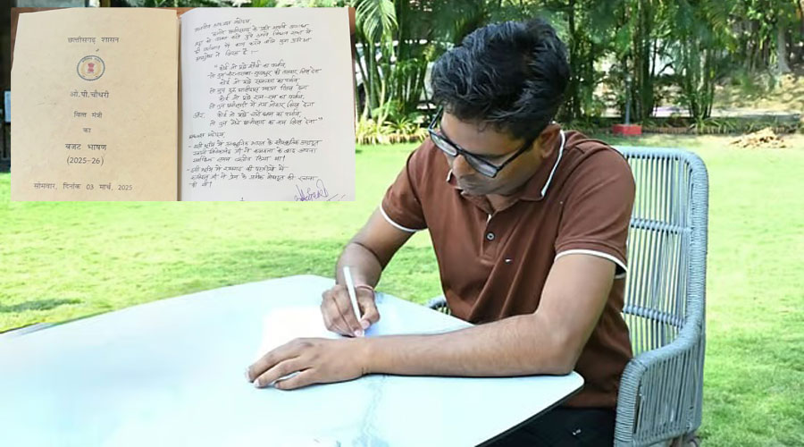 ராய்ப்பூர், டிஜிட்டல் ஆதிக்க சகாப்தத்தில், 100 பக்க பட்ஜெட்டை கையால் எழுதி தாக்கல் செய்துள்ளார் சத்தீஸ்கர் நிதியமைச்சரும் முன்னாள் ஐ.ஏ.எஸ். அதிகாரியுமான ஓ.பி. செளத்ரி.