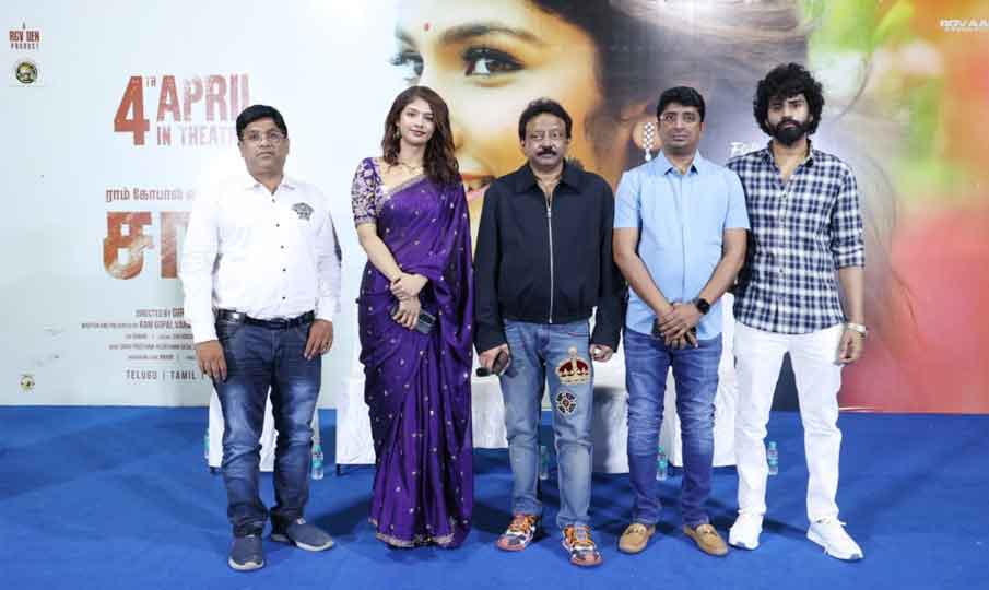 ஆர்ஜிவி ஆர்வி புரொடக்ஷன்ஸ் எல்எல்பி பேனரின் கீழ் ரவிசங்கர் வர்மா தயாரிப்பில் இயக்குநர் ராம் கோபால் வர்மா திரைக்கதையில் கிரி கிருஷ்ணா கமல் இயக்கத்தில் உருவாகியுள்ள திரைப்படம் ‘சாரி’. தமிழ், தெலுங்கு, இந்தி மற்றும் மலையாளம் ஆகிய மொழிகளில் ஏப்ரல் 4 அன்று வெளியாக உள்ளது. இந்திலையில் இப்படத்தின் பத்திரிக்கையாளர் சந்திப்பு சமீபத்தில் நடைபெற்றது. அப்போது பேசிய நடிகை ஆராத்யா தேவி, சோஷியல் மீடியாவில் உள்ள நெகட்டிவ் மற்றும் இருட்டு பக்கங்களை இந்தப் படம் பேசுகிறது. நிச்சயம் பெண்கள் இதை தங்களுடன் தொடர்பு படுத்திக் கொள்ள முடியும் என்றார். தயாரிப்பாளர் ரவி ஷங்கர் வர்மா, “ராம் கோபால் வர்மா சாருடன் எனக்கு இது முதல் படம். நல்ல படங்களை உருவாக்குவதே எங்கள் நோக்கம் என்றார். கேரள விநியோகஸ்தர் ஷானு பேசிகையில், நான் படம் பார்த்துவிட்டு ஜாபர் ஸ்டுடியோஸ் வினோத் அவர்களை படம் பார்க்க அழைத்தேன். அவருக்கும் படம் பிடித்துப் போக 100 செண்ட்ருக்கும் மேலாக தமிழகத்தில் நானே ரிலீஸ் செய்கிறேன் என சொன்னார் என்றார். இயக்குநர் ராம் கோபால் வர்மா பேசுகையில், சில நேரங்களில் சில கெட்ட விஷயங்கள் வாழ்க்கையில் நடந்து விடுகிறது. அது உறவில் மிகப்பெரிய விரிசலை ஏற்படுத்தக் கூடும். அதைத்தான் ‘சாரி’ திரைப்படம் பேசுகிறது” என்றார்.