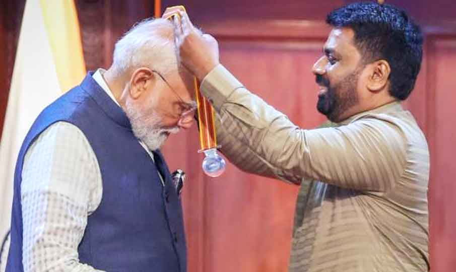 கொழும்பு : இலங்கை சென்றுள்ள பிரதமர் நரேந்திர மோடிக்கு, அந்நாட்டின் மிக உயரிய விருதான மித்ர விபூஷண விருதினை அந்நாட்டு அதிபர் அநுர குமார திசநாயக வழங்கி கௌரவித்துள்ளார்.