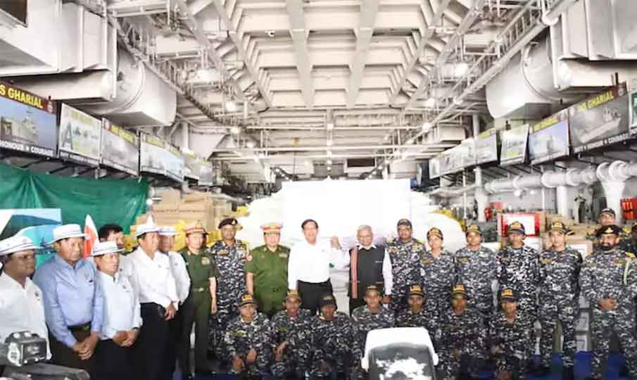 இந்நிலையில், அரிசி, சமையல் எண்ணெய், நூடுல்ஸ் மற்றும் பிஸ்கட்டுகள் என சுமார் 442 மெட்ரிக் டன் உணவுப் பொருட்களை இந்தியா மியான்மருக்கு அனுப்பி வைத்துள்ளது. இந்திய கடற்படைக்குச் சொந்தமான ஐ.என்.எஸ். காரியல் கப்பல் திலவா துறைமுகத்திற்கு சென்றடைந்தது. அதன்பின், மியான்மர் அதிகாரிகளிடம் நிவாரண பொருட்கள் ஒப்படைக்கப்பட்டது.