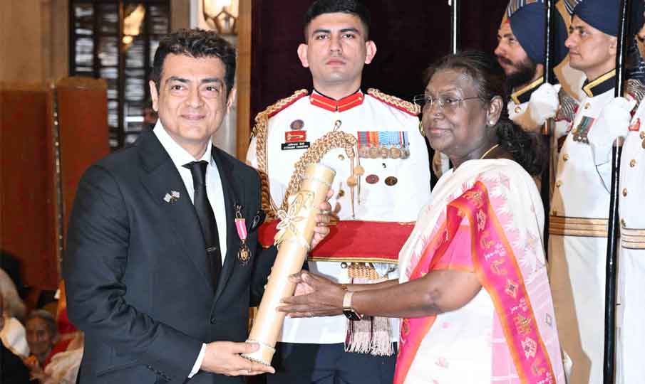 புதுடெல்லி : நடிகர் அஜித்குமாருக்கு, ஜனாதிபதி திரெளபதி முர்மு பத்ம பூஷன் விருது வழங்கி கவுரவித்தார்.