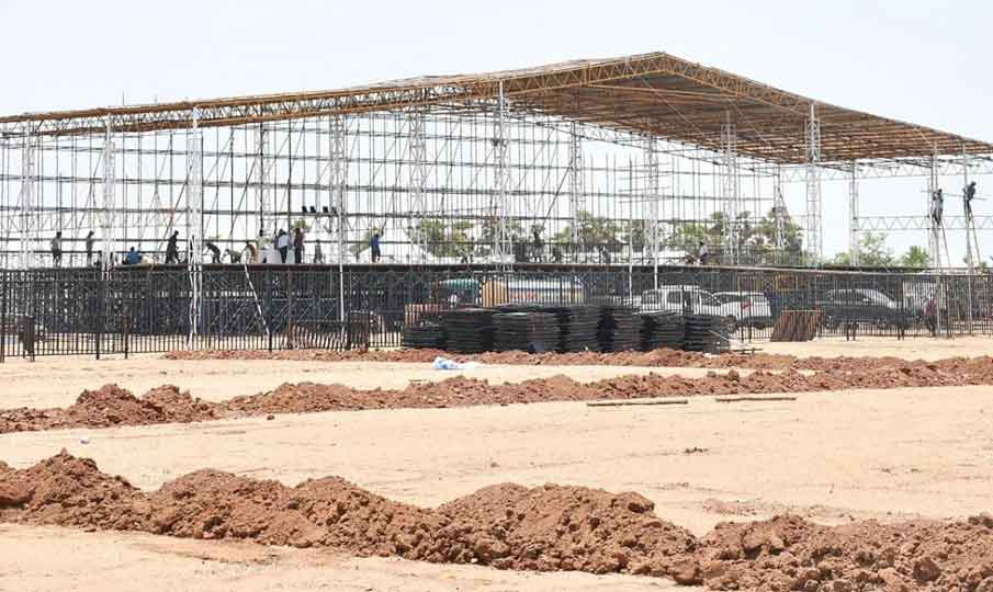 தமிழக வெற்றிக்கழகத்தின் 2-வது மாநில மாநாடு மதுரையில் வருகிற 21-ம் தேதி நடைபெறும் என்று அக்கட்சியின் தலைவர் நடிகர் விஜய் அறிவித்திருந்தார். இதையடுத்து மதுரை அருகே பாரப்பத்தியில் 500 ஏக்கர் பரப்பளவில் மாநாட்டுக்கான ஏற்பாடுகள் தீவிரமாக நடைபெற்று வருகின்றன. மேடை அமைக்கும் பணியில் தொழிலாளர்கள் ஈடுபட்டுள்ளனர். மேடையிலிருந்து தொண்டர்களிடையே நடந்து செல்லும் விதமாக 1,000 அடி நீளத்தில் தனி மேடை அமைக்கப்படுகிறது. கட்சியின் பொதுச் செயலாளர் ஆனந்த், மாநாட்டு ஏற்பாடுகளை கவனித்து வருகிறார்.