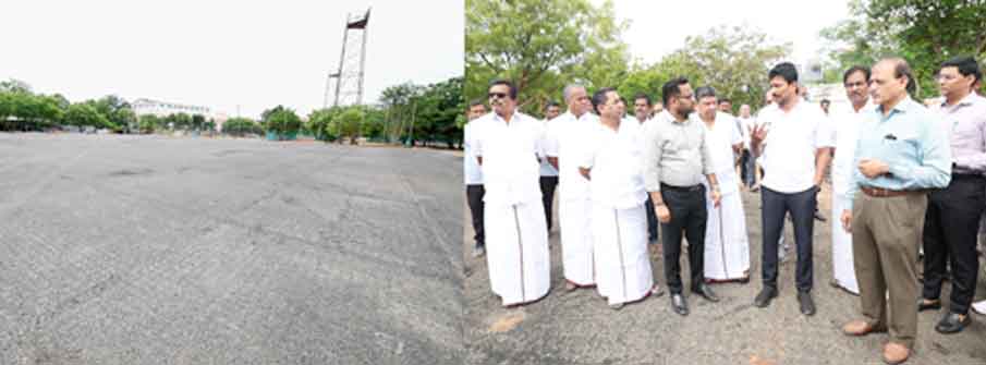 மதுரை மாவட்டத்தில் நடைபெறும் பல்வேறு நிகழ்வுகளில் பங்கேற்பதற்காக மதுரை வந்த உதயநிதி ஸ்டாலின், மாவட்ட விளையாட்டு அரங்கில் திடீர் ஆய்வு மேற்கொண்டார். அங்கு நடைபெற்று வரும் பாரா விளையாட்டு வீரர்களுக்கான உள் விளையாட்டு அரங்கம், நீச்சல் குளம், ஹாக்கி மைதானம் ஆகிய திட்டப் பணிகளை ஆய்வு செய்தார்.