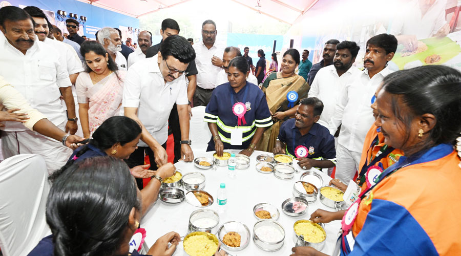 சென்னை கலைவாணர் அரங்கில் பெருநகர சென்னை மாநகராட்சியில் தூய்மைப் பணியாளர்களுக்கான உணவுத் திட்டம், குடியிருப்பு வீடுகள், பணியின்போது உயிரிழந்த தூய்மைப் பணியாளர்களின் குடும்பத்தினருக்கு நிவாரணம் ரூ. 10 லட்சமாக உயர்த்தி வழங்குதல், சுயதொழில் தொடங்கிட மானியம், தூய்மைப் பணியாளர்களின் குழந்தைகளுக்கு புதிய உயர்கல்வி உதவித்தொகை திட்டம் ஆகியவற்றினை தொடங்கி வைத்து, தூய்மைப் பணியாளர்களுக்கு நலத்திட்ட உதவிகளை வழங்கி விழாப் பேருரை ஆற்றினார்.