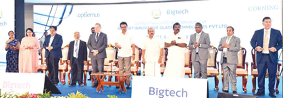 இந்நிலையில், காஞ்சிபுரம் மாவட்டம், பிள்ளைப்பாக்கம், சிப்காட் தொழிற்பூங்காவில், அமெரிக்க நாட்டைச் சேர்ந்த கார்னிங் இண்டர்நேஷனல் கார்ப்பரேஷன் மற்றும் இந்திய நாட்டைச் சேர்ந்த ஆப்டிமஸ் இன்ஃப்ராகாம் லிமிடெட் நிறுவனங்களின் கூட்டு நிறுவனமான பாரத் இன்னோவேட்டிவ் க்ளாஸ் டெக்னாலஜீஸ் நிறுவனம், ரூ.1,003 கோடி முதலீட்டில் 840 நபர்களுக்கு வேலைவாய்ப்பு அளிக்கும் வகையில் நிறுவியுள்ள மின்னணு சாதனங்களுக்கான உலகத் தரம் வாய்ந்த முன்-கவர் கண்ணாடிப் பொருட்கள் உற்பத்தித் திட்டத்தை முதல்வர் மு.க.ஸ்டாலின் வெள்ளிக்கிழமை (டிச.5) தொடங்கி வைத்தார்.