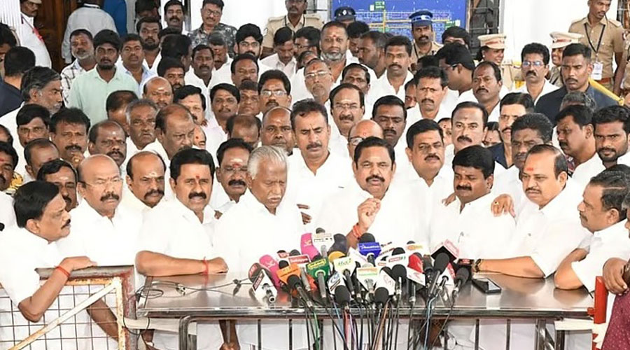 டி.டி.வி. தினகரனுடன் கை குலுக்கிய இ.பி.எஸ்.