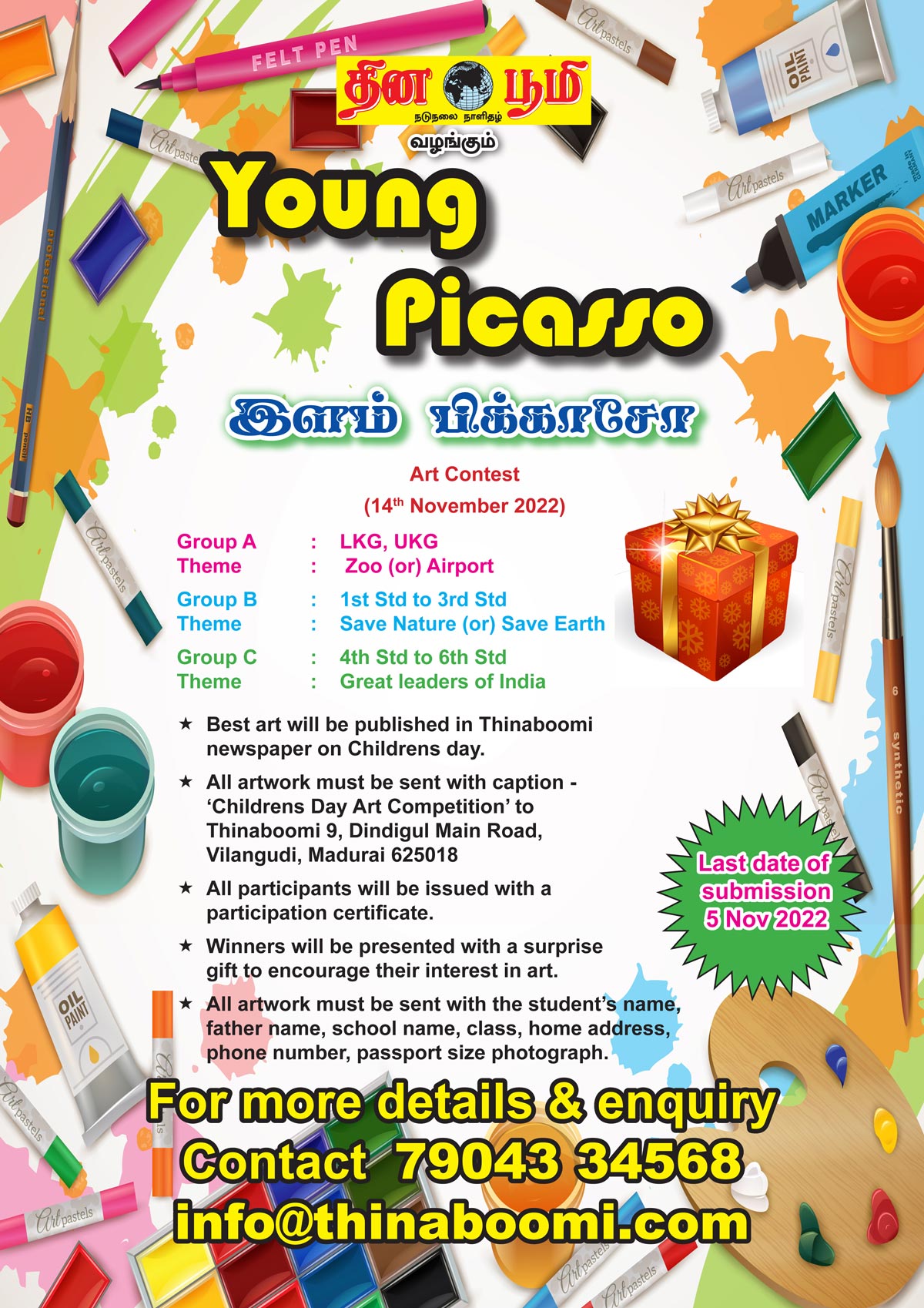 Participate in Thinaboomi's Childrens Art Contest 2022. Send your children's art work before the last date.