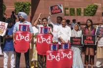 வர்த்தக சிலிண்டர் தட்டுப்பாட்டை கண்டித்து 3-வது நாளாக எதிர்க்கட்சி எம்.பி.க்கள் ஆர்ப்பாட்டம்