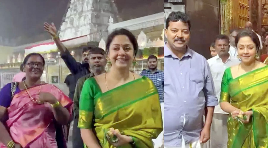 அதனை தொடர்ந்து தற்போது நடிகை ஜோதிகா திருப்பதி ஏழுமலையான் கோவிலில் சாமி தரிசனம் செய்துள்ளார். சாமி தரிசனம் செய்து விட்டு வந்த நடிகை ஜோதிகாவுடன் ரசிகர்கள் புகைப்படம் எடுத்துக் கொண்டார். அப்போது ரசிகர் ஒருவர் சாமியின் புகைப்படத்தை பரிசாக வழங்கினார். இது தொடர்பான வீடியோ இணையத்தில் வைரலாகி வருகிறது.