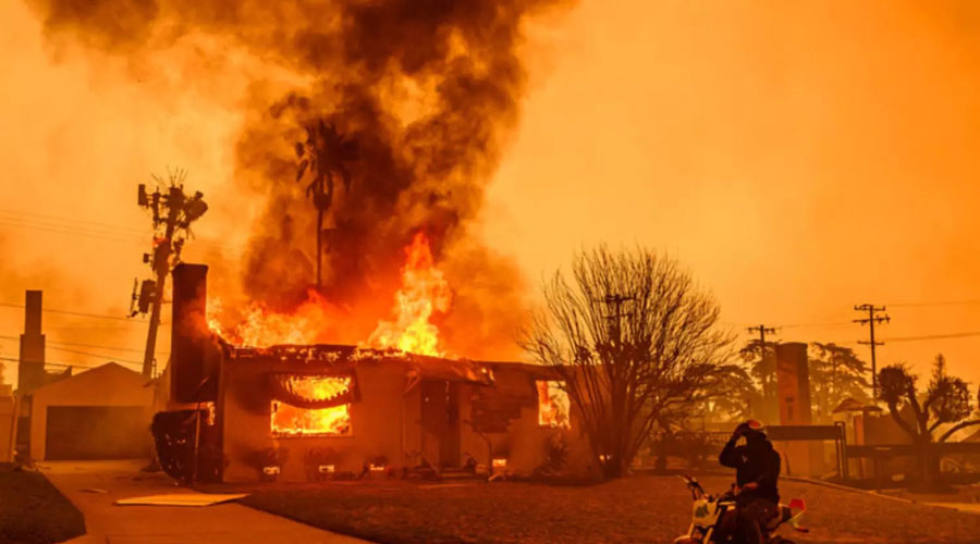 அமெரிக்காவின் கலிபோர்னியா மாகாணம் லாஸ் ஏஞ்சல்ஸ் நகரில் காட்டுத்தீ வேகமாக பரவி வருகிறது. லாஸ் ஏஞ்சல்ஸ் நகரின் கடற்கரை பகுதியில் உள்ள வனப்பகுதியில் காட்டுத்தீ பரவத்தொடங்கியது. பலத்த காற்று காரணமாக காட்டுத்தீ நகரின் பல்வேறு பகுதிகளுக்கும் வேகமாக பரவி வருகிறது.