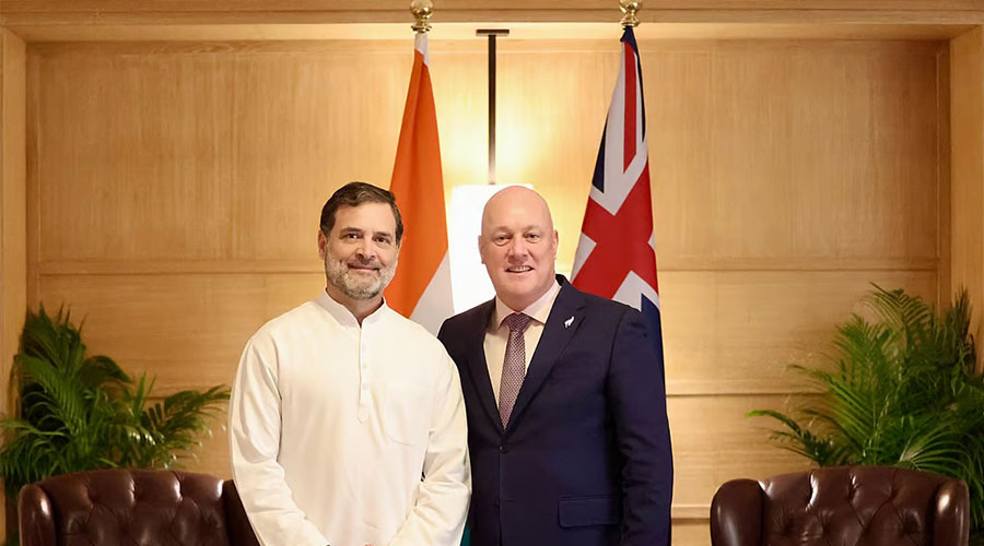 இந்த நிலையில், தில்லியில் செவ்வாய்க்கிழமை காலை நியூஸிலாந்து பிரதமா் கிறிஸ்டோபா் லக்ஸனை மரியாதை நிமித்தமாக நேரில் சந்தித்த ராகுல் காந்தி அவருடன் கலந்துரையாடினார். அவருடன் எடுத்த புகைப்படத்தை பகிர்ந்த ராகுல் காந்தி, உலகளாவிய சவால்கள் மற்றும் இரு நாடுகளுக்கு இடையிலான உறவுகளை வலுப்படுத்துவதற்கான வாய்ப்புகள் குறித்து விவாதம் நடத்தினோம் எனத் தெரிவித்துள்ளார்.