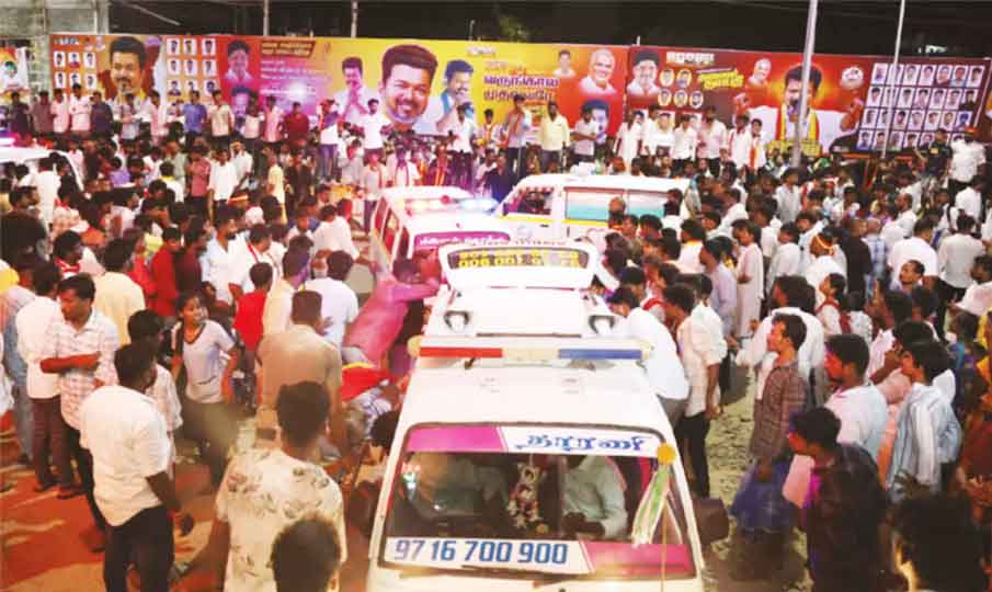 இந்நிலையில் விஜய் பிரசாரத்தின் போது மயங்கி விழுந்தவர்களை தனது ஆம்புலன்ஸ் மூலம் மருத்துவமனைகளுக்கு கொண்டு செல்ல அங்கு சென்றதாகவும், தன் மீது அவதூறு பரப்பிய நபர் மீது தக்க நடவடிக்கை எடுக்குமாறு தரனீஷ் வேலாயுதம்பாளையம் போலீஸ் நிலையத்தில் புகார் அளித்தார். அதன் பேரில் சப்-இன்ஸ்பெக்டர் சுபாஷினி சமூக வலைத்தளங்களில் தரனீஷ் மீது அவதூறு பரப்பிய நபர் மீது வழக்குப்பதிவு செய்து, அவரை தேடி வருகிறார்.
