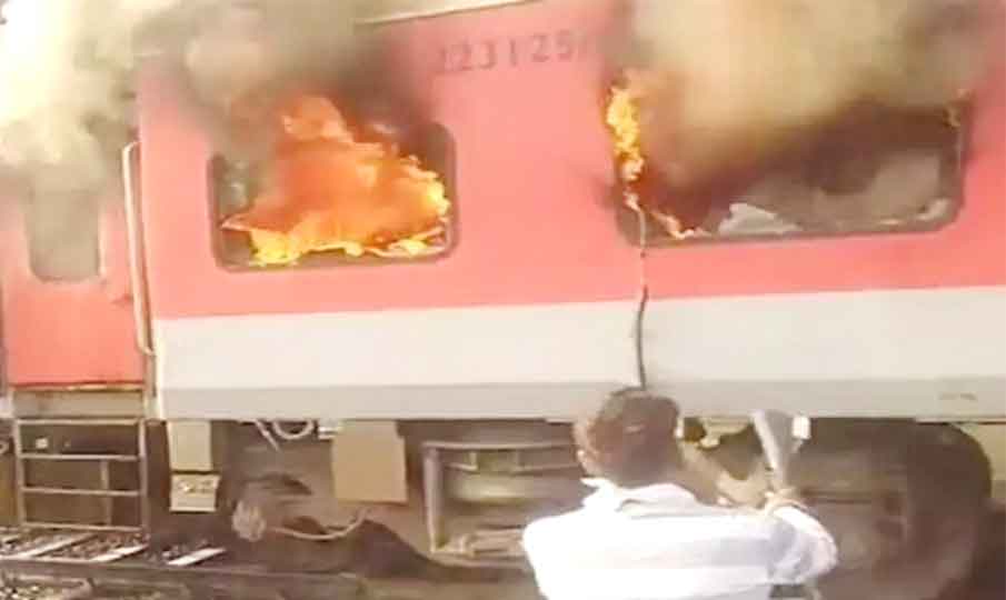 இது தொடர்பாக ரயில்வே அதிகாரிகள் கூறியதாவது: ரயிலின் 19-வது பெட்டியில் புகை வந்ததை பார்த்த பயணிகள் உடனடியாக அபாய சங்கிலியை பிடித்து இழுத்து ரயிலை நிறுத்தியுள்ளனர். புகை அளவுக்கு அதிகமாக வந்ததும் பயணிகள் பெட்டியில் இருந்து வெளியே குதித்தனர். இதில் சில பயணிகளுக்கு லேசான காயம் ஏற்பட்டது. தகவல் கிடைத்ததும் உடனடியாக சென்ற தீ அணைப்பு வீரர்கள் தீயை கட்டுக்குள் கொண்டு வந்தனர். தீ விபத்துக்கான காரணம் குறித்து விசாரணை நடைபெற்று வருகிறது” என்றார்.