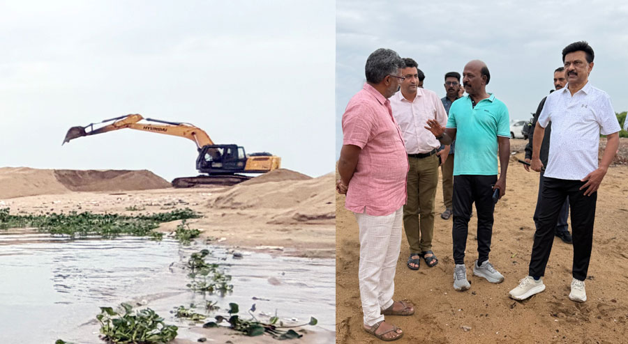 அந்த வகையில், சென்னை சீனிவாசபுரம் அருகே அடையாறு ஆறு கடலில் கலக்கும் முகத்துவாரத்தில் நடைபெற்று வரும் தூர்வாரும் பணிகளை முதல்வர் மு.க.ஸ்டாலின் நேற்று நேரில் பார்வையிட்டு ஆய்வு செய்தார். அப்போது, முகத்துவாரத்தை அகலப்படுத்தும் பணிகளை விரைந்து முடிக்குமாறு அதிகாரிகளுக்கு முதல்வர் மு.க.ஸ்டாலின் அறிவுறுத்தினார்.