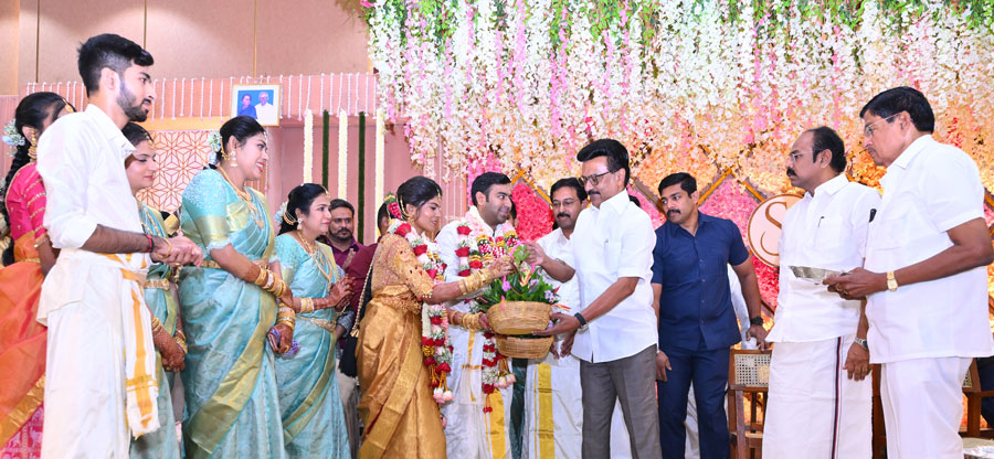 நாட்டின் ஒற்றுமைக்காக - தமிழகத்தின் வளர்ச்சிக்காக தி.மு.க.வும்-காங்கிரசும் இன்று ஒரே அணியில் பயணிக்கிறது: திருமண விழாவில் முதல்வர் மு.க.ஸ்டாலின் பேச்சு