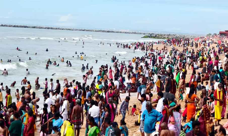 இதனால் கடலில் பாசி படர்ந்த பாறைகள் வெளியே தெரிந்தன. கடல் உள்வாங்கி உள்ளதால் பக்தர்கள் கடலில் குளிக்க சற்று சிரமம் அடைந்துள்ளனர். மேலும் ஆபத்தை உணராமல் பாறைகள் மேல் நின்று பக்தர்கள் செல்பி எடுத்து செல்கின்றனர். கடல் உள்வாங்கிய பகுதிகளில் காவல்துறையினர் மற்றும் கோவில் கடற்கரை பாதுகாப்பு பணியினர் பக்தர்களுக்கு எச்சரிக்கை விடுத்து வருகின்றனர்.