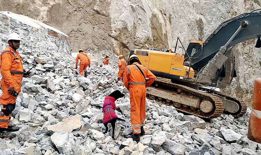 உத்தரப் பிரதேச மாநிலம் சோன்பத்ராவில் கல் குவாரியில் பாறைகள் சரிந்ததில் 10க்கும் மேற்பட்ட தொழிலாளர்கள் சிக்கினர். நிகழ்விடத்தில் தேசிய மற்றும் மாநில பேரிடர் மீட்புப் படை வீரர்கள் மீட்புப் பணியில் ஈடுபட்டுள்ளனர். கல் குவாரியின் இடிபாடுகளில் இருந்து ஞாயிற்றுக்கிழமை காலை தொழிலாளி ஒருவரின் உடல் மீட்கப்பட்டது.