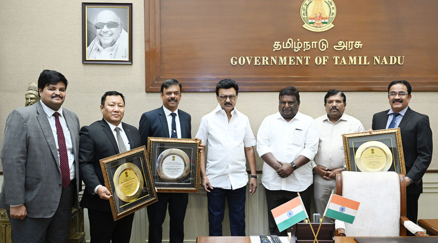 தமிழ்நாடு முதல்வர் மு.க. ஸ்டாலினிடம் நேற்று (17.11.2025) தலைமைச் செயலகத்தில், ஹரியானாவில் நடைபெற்ற 2025-ம் ஆண்டிற்கான 18-வது அர்பன் மொபிலிட்டி இந்தியா மாநாட்டில் தேசிய அளவில் கலந்து கொண்ட 17 பெருநகரங்களில் நாட்டிலேயே சிறந்த பொதுப் போக்குவரத்து அமைப்பு கொண்ட நகரமாக சென்னை மாநகர் போக்குவரத்து கழகம் தேர்ந்தெடுக்கப்பட்டதற்கான விருது, சிறந்த பல்முனை போக்குவரத்து ஒருங்கிணைப்புடன் கூடிய மெட்ரோ ரயில் என்ற பிரிவின் கீழ், நகர்ப்புற போக்குவரத்தில் சிறந்து விளங்குவதற்கான விருது மற்றும் சிறந்த பயணிகள் சேவை மற்றும் திருப்தி அளிக்கும் மெட்ரோ இரயில் என்ற பிரிவின் கீழ் நகர்ப்புற போக்குவரத்துக்கான பாராட்டுச் சான்றிதழ் ஆகிய விருதுகளை போக்குவரத்து மற்றும் மின்சாரத்துறை அமைச்சர் சி. சிவசங்கர், சிறப்பு முயற்சிகள் துறை கூடுதல் தலைமைச் செயலாளர் டாக்டர் கே. கோபால், சென்னை மெட்ரோ இரயில் நிறுவனத்தின் மேலாண்மை இயக்குநர் எம்.ஏ. சித்திக், போக்குவரத்துத் துறை முதன்மைச் செயலாளர் சுன்சோங்கம் ஜடக் சிரு, சென்னை-மாநகர் போக்குவரத்துக் கழகத்தின் மேலாண்மை இயக்குநர் த. பிரபுசங்கர் ஆகியோர் காண்பித்து வாழ்த்து பெற்றனர்.