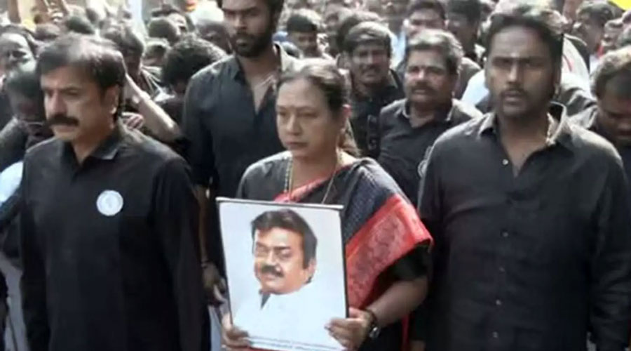 இதனை தொடர்ந்து, சென்னை கோயம்பேட்டில் தே.மு.தி.க.வினர் பேரணி நடத்தினர். பிரேமலதா விஜயகாந்த் தலைமையில் மாநில தேர்தல் ஆணையத்தில் இருந்து விஜயகாந்த் நினைவிடம் நோக்கி பேரணி நடைபெற்றது. இதில் விஜயகாந்த் மகன் விஜய பிரபாகரன், சுதீஷ் மற்றும் நூற்றுக்கணக்கான மக்கள், தே.மு.தி.க. தொண்டர்கள் பங்கேற்றனர்.