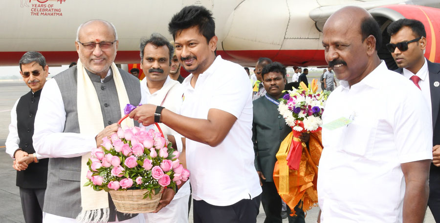 02 Jan 2026சென்னை, சென்னை வந்த துணை ஜனாதிபதி சி.பி.ராதாகிருஷ்ணனை தமிழ்நாடு அரசு சார்பில் துணை முதல்வர் உதயநிதி ஸ்டாலின் நேற்று நேரில் வரவேற்றார்.