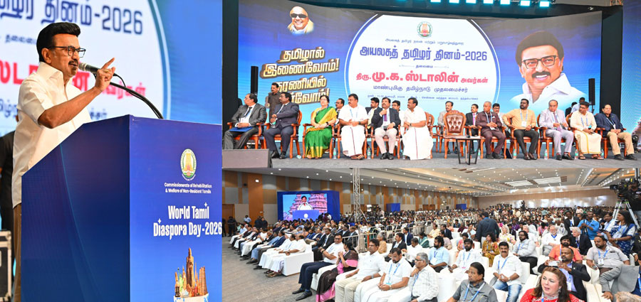 சென்னை, நந்தம்பாக்கம், சென்னை வர்த்தக மையத்தில் அயலகத் தமிழர் நலன் மற்றும் மறுவாழ்வுத் துறை சார்பில் நடைபெற்ற அயலகத் தமிழர் தினம் - 2026 விழாவில், முதல்வர் மு. க. ஸ்டாலின் பங்கேற்று, அயலகத் தமிழர்களுக்கான விருதுகளை வழங்கினார். இதனைத் தொடர்ந்து அவர் பேசுகையில், ”தமிழர்கள் கனவு கண்டால், அதை நாம் அடைந்தே தீருவோம். மொழி உரிமைக்காக தனது உயிரைத் தியாகம் செய்தது தி.மு.க., நமக்குள் எந்த பிளவுகளும் ஏற்பட அனுமதிக்காதீர்கள். ஒரு தாய் மக்களாய் வாழ்வோம்.