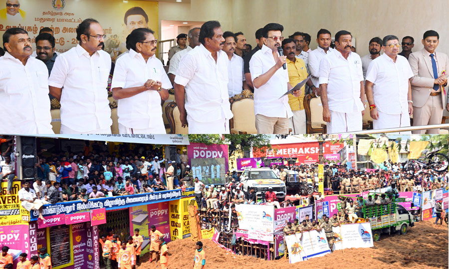 அலங்காநல்லூரில் நடைபெறும் ஜல்லிக்கட்டுப் போட்டியைக் காண்பதற்காக முதல்வர் ஸ்டாலின் நேற்று மதுரைக்கு வந்தார். மதுரை விமான நிலையத்தில் இருந்து அலங்காநல்லூர் வருகை தந்த முதல்வர் ஸ்டாலினுக்கு சாலைகளின் இருபுறங்களிலும் திரண்டிருந்த மக்கள் உற்சாக வரவேற்பளித்தனர். ஜல்லிக்கட்டுப் போட்டியைக் காண காலை 11.10 மணியளவில் விழா மேடை திடலுக்கு வந்த முதல்வர் ஸ்டாலினுக்கு அமைச்சர் பி. மூர்த்தி பொன்னாடை அணிவித்து வரவேற்றார். இந்த நிகழ்ச்சியில் அமைச்சர்கள் பி.டி.ஆர். பழனிவேல் தியாகராஜன், தங்கம் தென்னரசு, கே.கே.எஸ்.எஸ்.ஆர். ராமச்சந்திரன், கே.என். நேரு, மதுரை எம்.பி. சு. வெங்கடேசன், சோழவந்தான் சட்டப்பேரவை உறுப்பினர் வெங்கடேசன் உள்ளிட்டோர் கலந்து கொண்டனர்.
