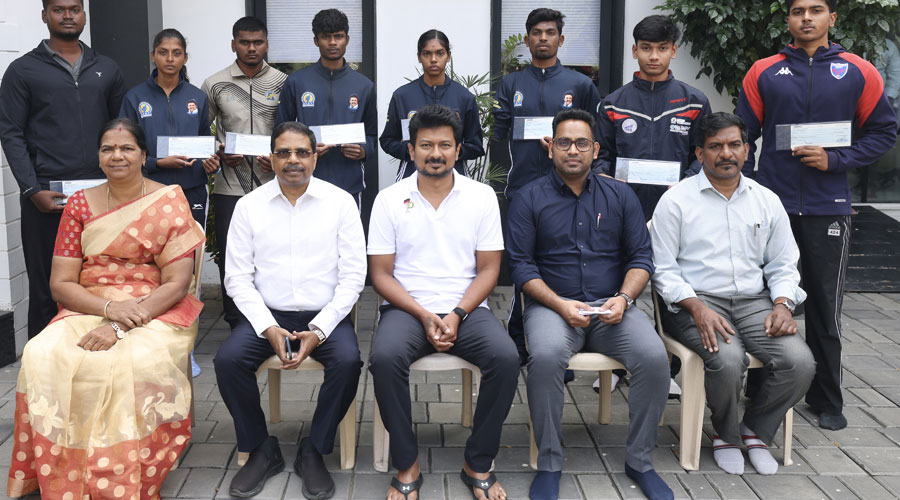 அதனடிப்படையில், தமிழ்நாடு துணை முதல்வர் உதயநிதி ஸ்டாலின் நேற்று, தேசிய அளவில் நடைபெற்ற போட்டிகளில் பதக்கங்கள் வென்ற தடகள வீரர்கள் ஜ.கோகுலபாண்டியன், வீ.நவீன்குமார் மற்றும் வீராங்கனைகள் ஜா.சுஜி, கா.யாமினி ஆகியோருக்கு விளையாட்டு உபகரணங்கள் வாங்குவதற்காக மொத்தம் ரூ.1.35 லட்சத்திற்கான காசோலைகளையும், வில்வித்தை வீரர்கள் ப.சதீஷ்குமார் மற்றும் ர.பிரித்தீஸ்வரன் ஆகியோருக்கு விளையாட்டு உபகரணங்கள் வாங்குவதற்காக தலா 1 லட்சம் ரூபாய்க்கான காசோலைகளையும் வழங்கினார்.