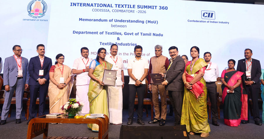 தமிழ்நாடு துணை முதல்வர் உதயநிதி ஸ்டாலின் நேற்று (29.1.2026) கோயம்புத்தூர் கொடிசியா வளாகத்தில் நடைபெற்ற முதலாவது சர்வதேச ஜவுளி தொழில் மாநாட்டில் சிறந்த ஏற்றுமதியாளர்களுக்கான விருதுகள் மற்றும் பரிசுத் தொகை காசோலைகளையும், தமிழ்நாடு புதிய ஒருங்கிணைந்த ஜவுளிக் கொள்கையின்கீழ், ஜவுளித் தொழிலில் ஈடுபட்டுள்ள நிறுவனங்களுக்கு முதலீட்டு மானியம், வட்டி மானியம் மற்றும் தொழில்நுட்ப ஜவுளிப் பூங்கா நிறுவனத்திற்கு மாநில அரசின் பங்குத் தொகை வழங்குவதற்கான அரசின் ஆணைகளை வழங்கினார்.