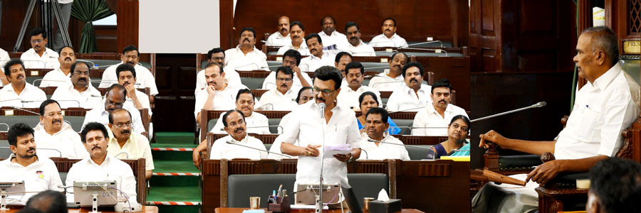 தங்களுக்குத் துணையாக நின்று, பேரவையின் துணைத் தலைமைப் பொறுப்பை ஏற்று, அமைதியாக, சிறப்பாகப் பேரவையை நடத்தும் பேரவைத் துணைத் தலைவர் அவர்களுக்கும் என்னுடைய பாராட்டுகள், நன்றிகள். இப்பேரவையில் அனல் பறக்கும் விவாதம் நடைபெறக்கூடிய நேரத்தில், கருத்து மோதல்களை எதிர்கொண்டு, கட்சி வேறுபாடுகள் வெளிப்படுகையில் தன்னுடைய அனுபவத்தினாலும், அபார நினைவாற்றலாலும் அமைதிப்படுத்தக்கூடியவர், பேரவையின் மூத்த உறுப்பினர் அவை முன்னவர் என்னுடைய ஆருயிர் அண்ணன் துரைமுருகன் அவர்கள். அவர் தற்போது இடுப்பு எலும்பு முறிவு ஏற்பட்டு அறுவை சிகிச்சை செய்து கொண்டு மருத்துவமனையிலே அனுமதிக்கப்பட்டிருக்கிறார். அவர் விரைந்து உடல்நலம் பெற்று வரவேண்டும் என்று விரும்புகிறேன். அவருக்கும் இந்த நேரத்தில் என்னுடைய நன்றிகள்.