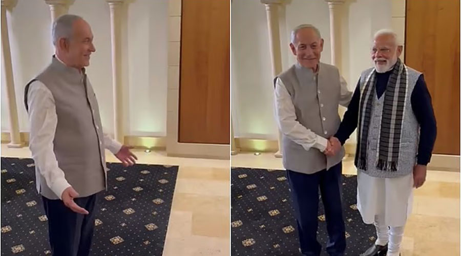 பிரதமர் நரேந்திர மோடியை இந்திய உடையில் வரவேற்ற நெதன்யாகு