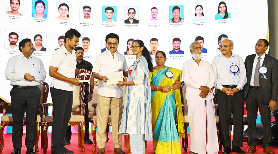 இதுகுறித்து தமிழக அரசு வெளியிட்டுள்ள செய்திக்குறிப்பில் தெரிவித்திருப்பதாவது;- விக்டோரியா பொது அரங்கத்தில் நடைபெற்ற அகில இந்திய குடிமைப் பணித் தேர்வு வெற்றியாளர்களுக்கான பாராட்டு விழாவில், நான் முதல்வன் மற்றும் அகில இந்திய குடிமைப் பணித் தேர்வு பயிற்சி மையத்தில் பயின்று 2025ஆம் ஆண்டிற்கான அகில இந்திய குடிமைப் பணித் தேர்வில் வெற்றி பெற்ற 54 வெற்றியாளர்களுக்கு பாராட்டுச் சான்றிதழ்களை முதல்வர் மு.க.ஸ்டாலின் வழங்கி வாழ்த்தினார்.