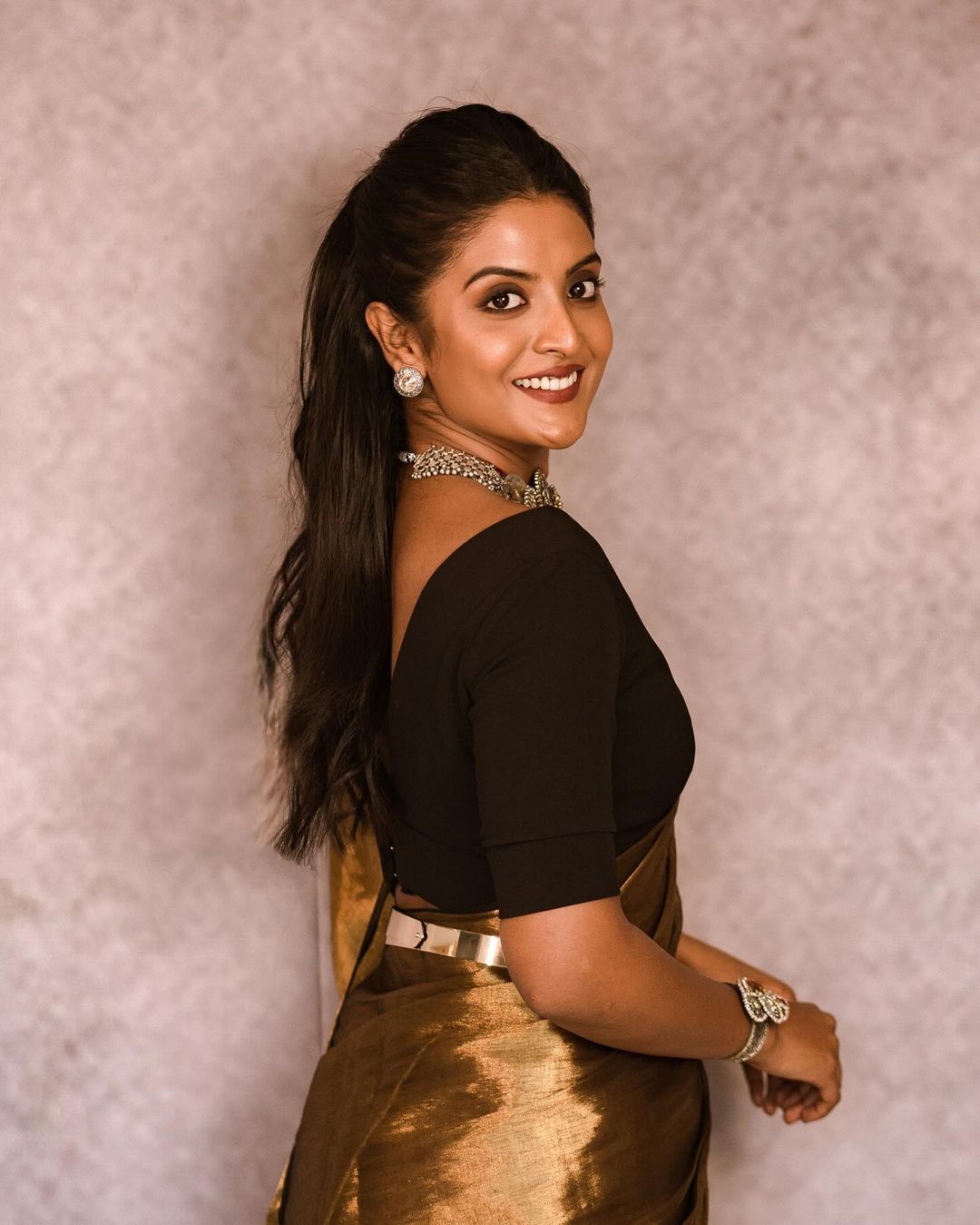 Actress Nivedhithaa Sathish Looking Gorgeous In Saree