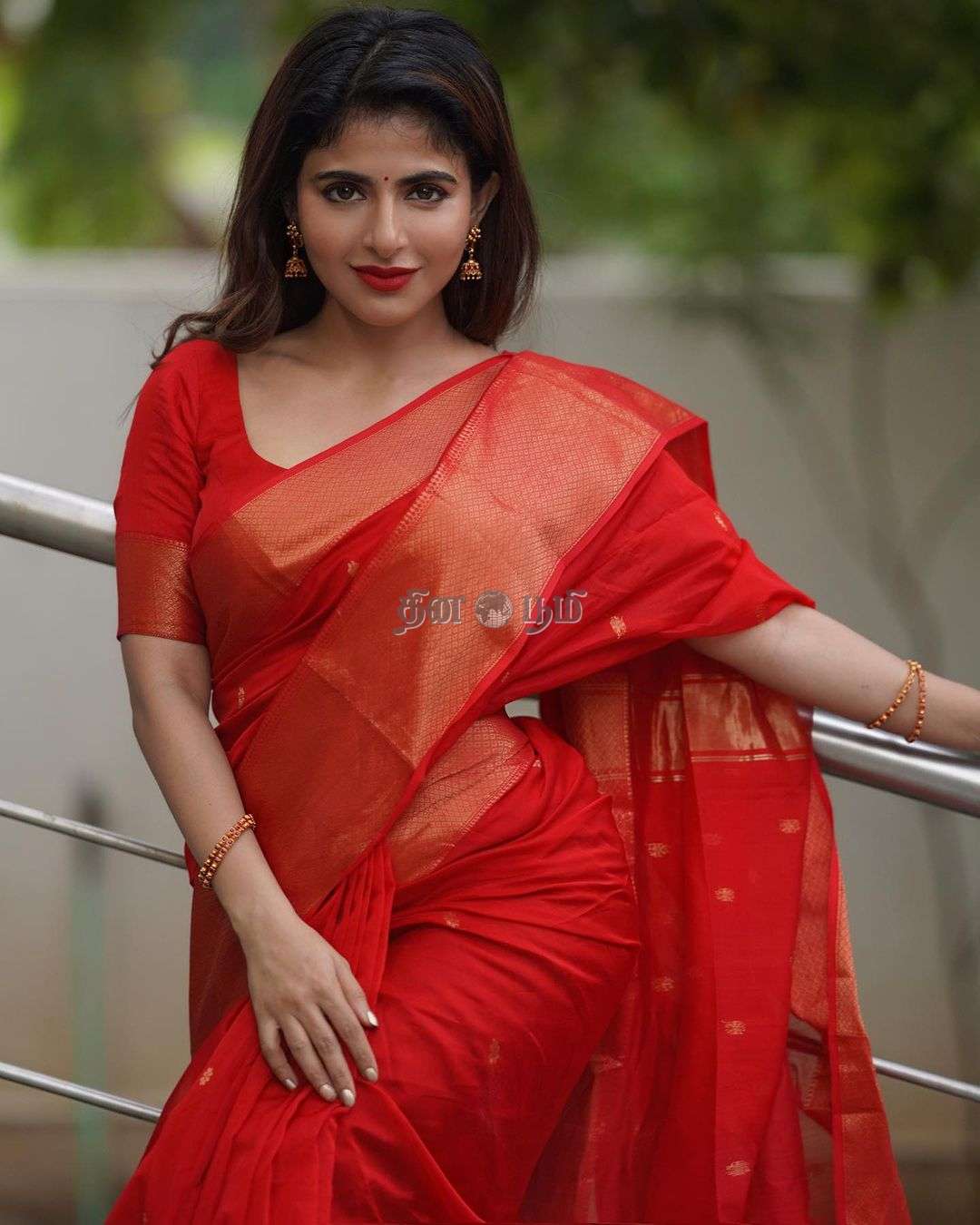 Mesmerizing Beauty Of Actress Iswarya Menon In Red Saree