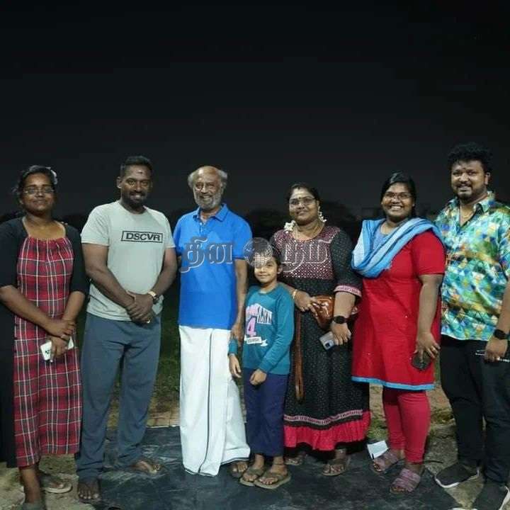 Super Star RajiniKanth wishes actor Robo Shankar for his 22nd wedding anniversary in jailor movie shooting spot.